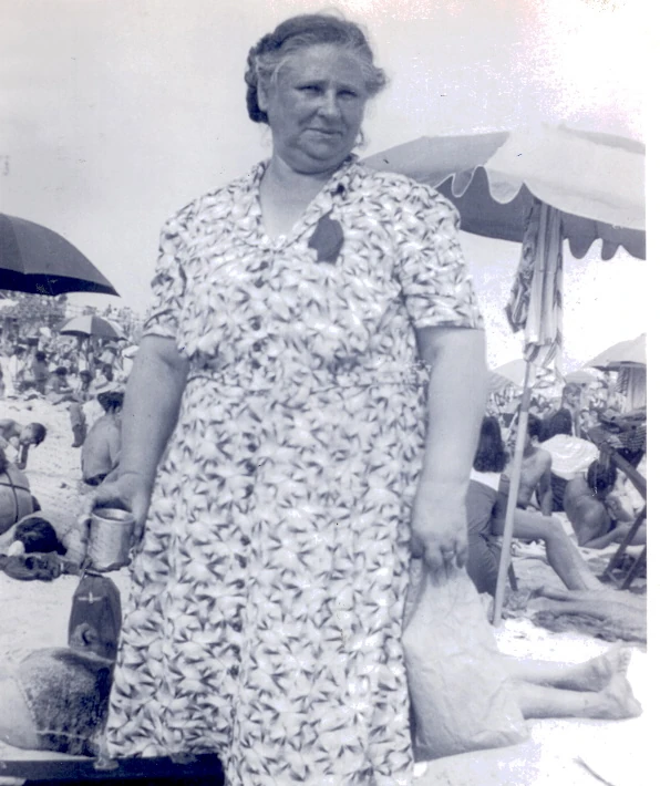 Eva (Douse) Rice at the beach in Rockaway in the late 1940s or early 1950s