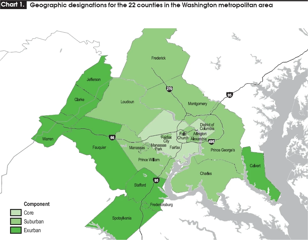 - ^ a b c d Perrins, Gerald; Nilsen, Diane (December 2006). "Industry Dynamics in the Washington, D.C. area: has a second job core emerged?". Monthly Labor Review. http://www.bls.gov/opub/mlr/2006/12/art1full.pdf.