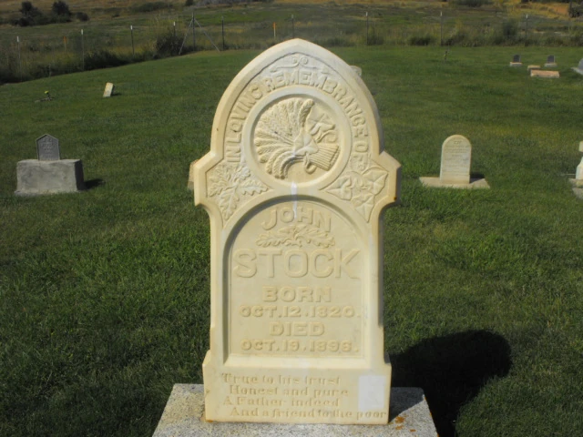 - John Stocktype=biography, FindAGrave, https://www.findagrave.com/memorial/10376111/john_stock, retrieved 14 Sept 2024