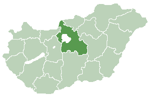 Pest County is a county (megye ) in central Hungary . It covers an area of 6,393.14 square kilometres (2,468.41 sq mi), and has a population of 1,213,090 (2009). It surrounds the national capital Budapest and the majority of the county's population (65.2%/790,995 in 2009) live in the suburbs of Budapest . It shares borders with Slovakia and the Hungarian counties Nógrád , Heves , Jász-Nagykun-Szolnok , Bács-Kiskun , Fejér and Komárom-Esztergom . The River Danube flows through the county. The capital of Pest County is Budapest (administratively separate).