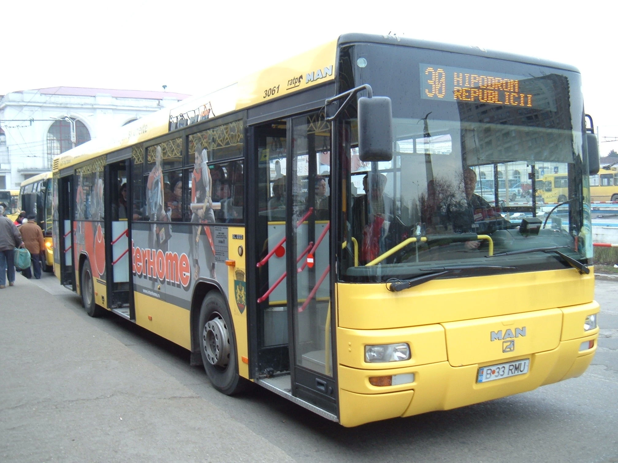 Yellow city bus in Ploieşti.