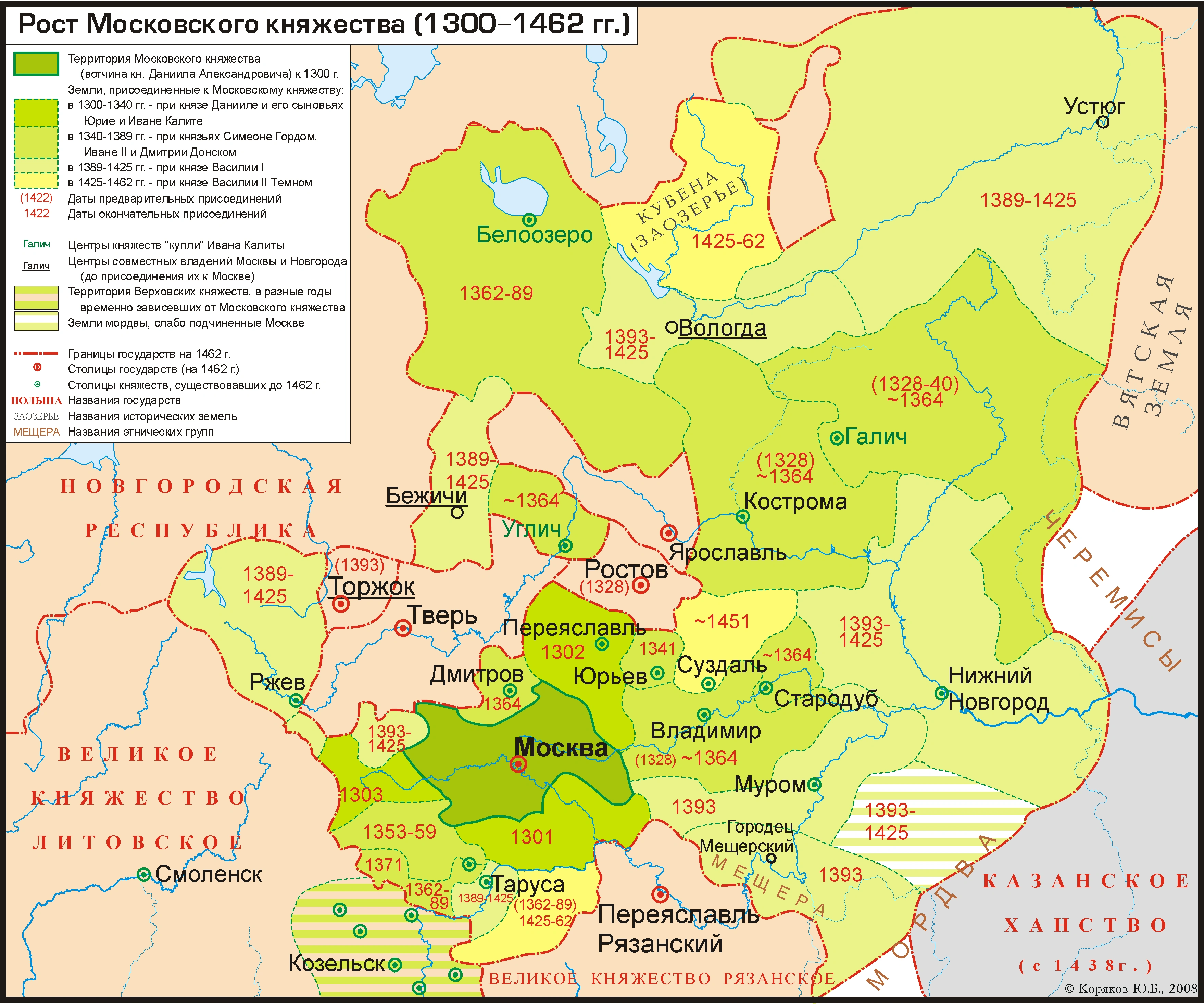 Having emerged from the Principality of Rostov, in 14th-15th centuries, the Principality of Yaroslavl was reduced to appanage principalities (udels} [1] and was ultimately incorporated into Grand Principality of Moscow.