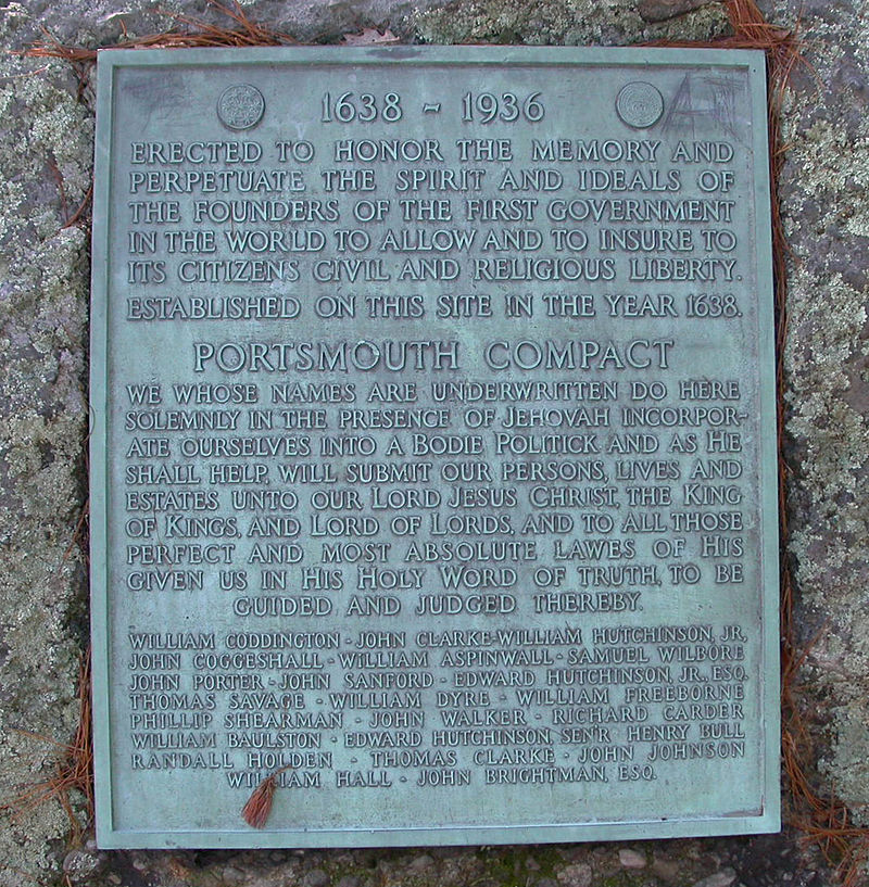 Plaque commemorating the Portsmouth Compact 1638-1936